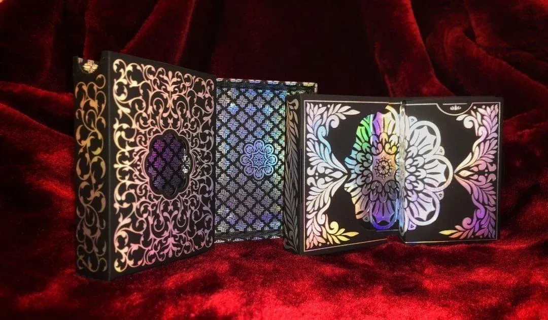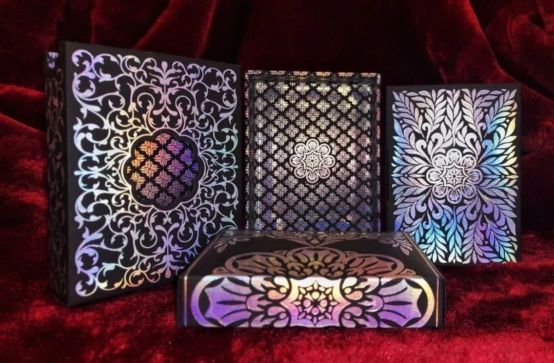 牌本身的背面采用了烫印银箔,牌面则使用银色金属油墨印刷在薄的压碎纸张上,并带有全息烫边。这副牌实际上是USPCC生产的第一副使用了全部四种额外特征(烫印箔、烫边、金属油墨和薄压碎纸张)的牌,同时也是使用薄压碎纸张的最后一次生产批次。